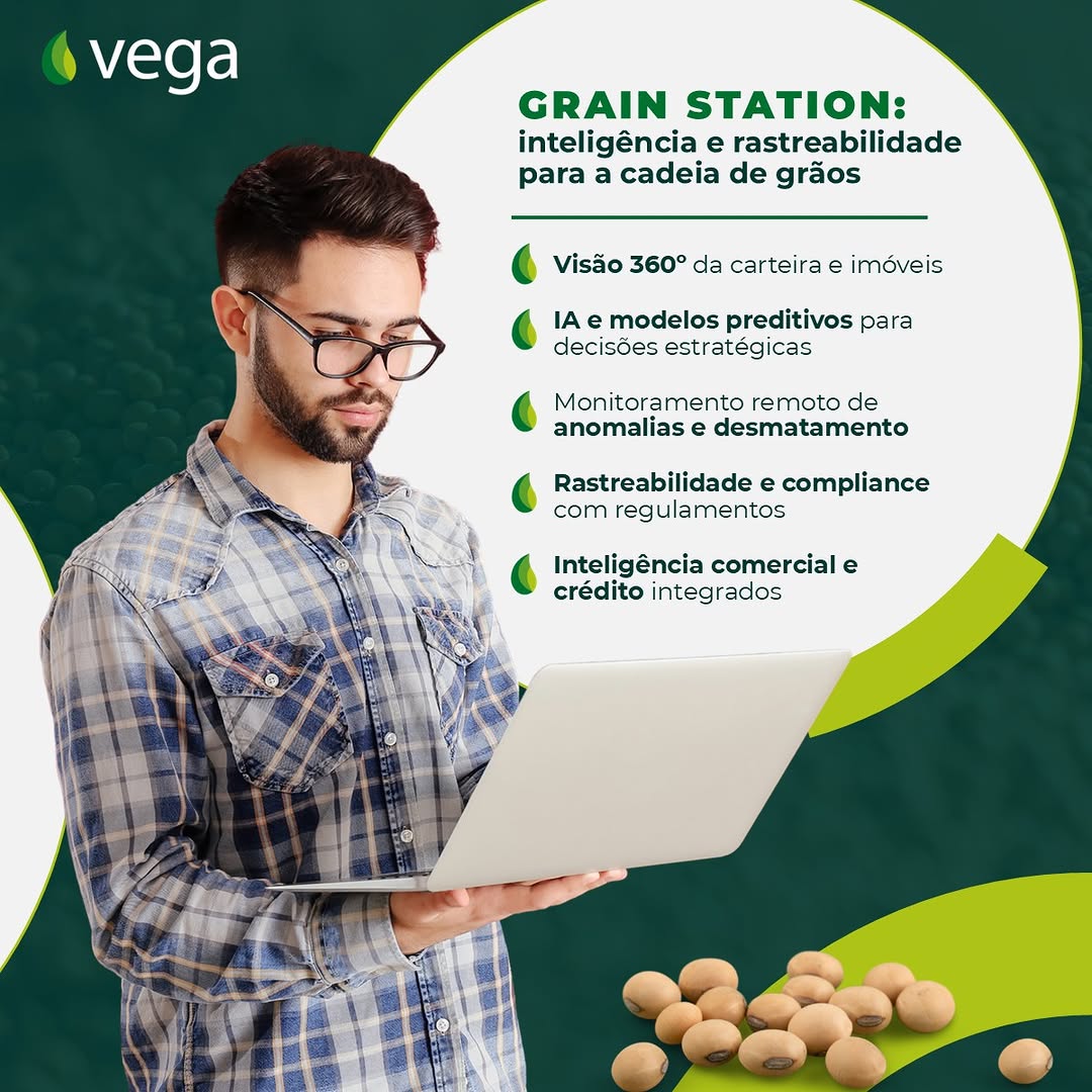A agtech brasileira Vega Monitoramento lançou a Grain Station, plataforma que integra dados geoespaciais, inteligência artificial e sensoriamento remoto para melhorar o monitoramento e a rastreabilidade da cadeia de grãos.