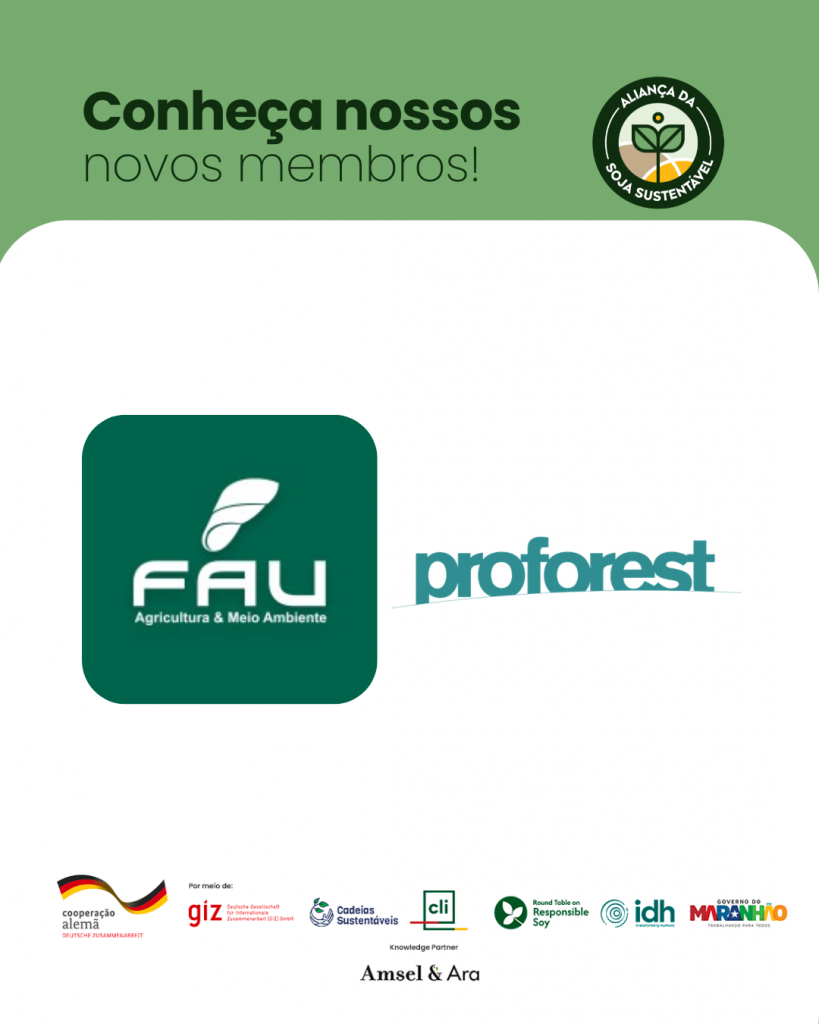 A Aliança da Soja Sustentável amplia sua base institucional com a entrada de duas organizações que reforçam a capacidade técnica, analítica e de atuação em cadeias sustentáveis: FAU – Agricultura & Meio Ambiente e Proforest.