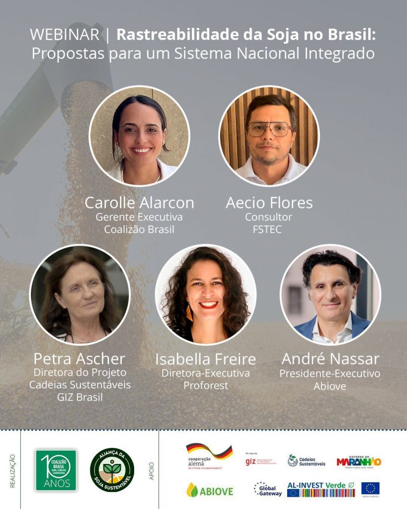 A Aliança da Soja Sustentável, em parceria com a Coalizão Brasil Clima, Florestas e Agricultura, realizou o webinar “Rastreabilidade da Soja no Brasil: Propostas para um Sistema Nacional Integrado”, reunindo especialistas para discutir avanços, desafios e oportunidades para a rastreabilidade da cadeia da soja.